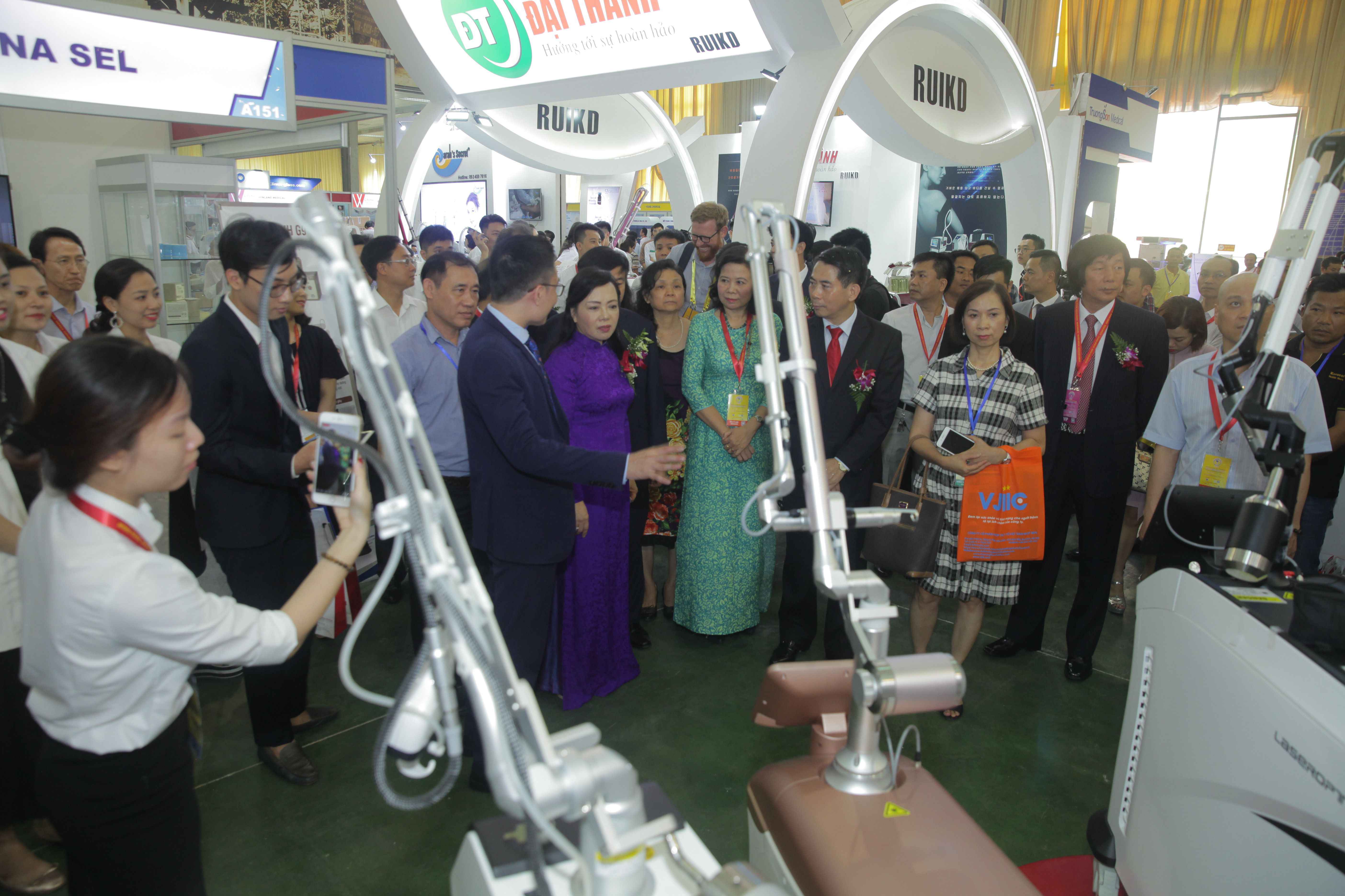 Phát biểu tại đây, Bộ trưởng Bộ Y tế Nguyễn Thị Kim Tiến nhấn mạnh, triển lãm VIETNAM MEDI-PHARM 2019 vẫn tiếp tục là điểm đến hấp dẫn với các doanh nghiệp ngành Y Dược, thu hút trên 535 gian hàng của 430 tổ chức, tập đoàn, doanh nghiệp đến từ 30 quốc gia và vùng lãnh thổ – là những thương hiệu uy tín của thế giới và Việt Nam về thiết bị Y tế và Dược phẩm.